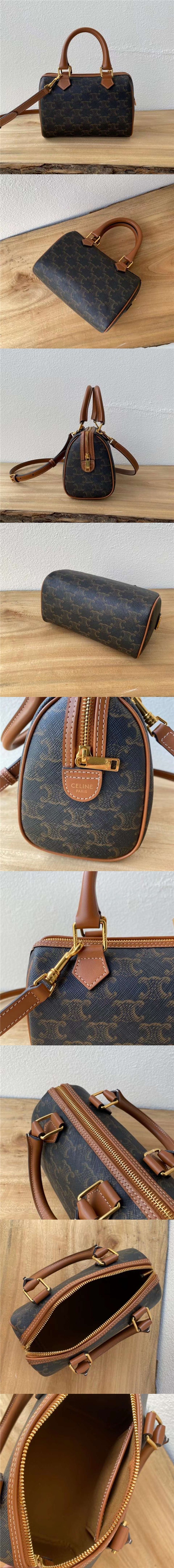 高仿賽琳Celine手提包,小號標志印花牛皮革波士頓包TRIOMPHE CANVAS標志印花,小號不大不小上身剛剛好、高個子和小個子都可以駕馭啦,款號: 197582