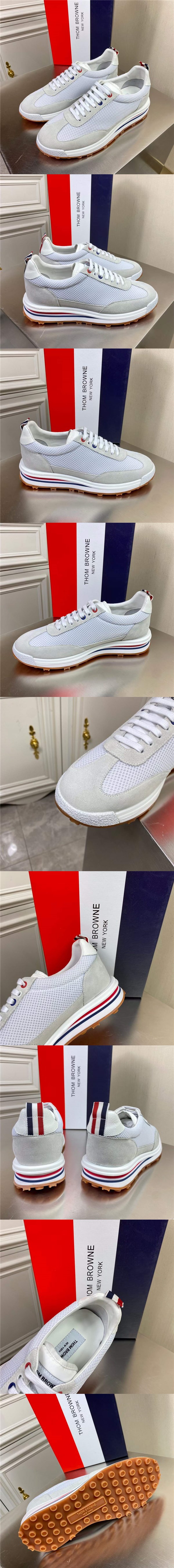 高仿桑姆 佈郎尼Thom Browne男士運動休閑鞋!小牛皮搭配透氣網眼面料,羊皮內裡、紐扣鞋釘飾橡膠鞋底