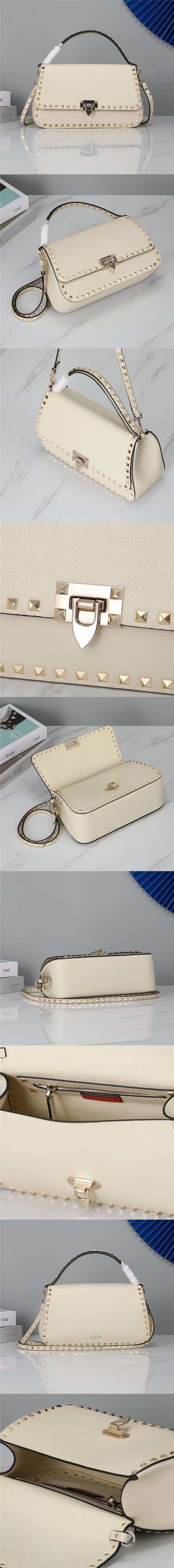 高仿華倫天奴Valentino新款手提包,浪漫綺麗少女夢,經典柳釘,合成材質與奇趣色彩,平凡的東西註入想象力令人驚喜卻不失實用功能,手拎 斜跨 手腕出行,一包多用。型號:2025S