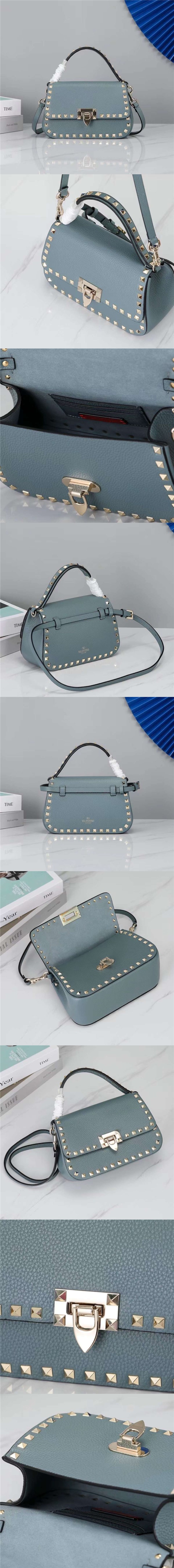 高仿華倫天奴Valentino新款手提包,浪漫綺麗少女夢,經典柳釘,合成材質與奇趣色彩,平凡的東西註入想象力令人驚喜卻不失實用功能,手拎 斜跨 手腕出行,一包多用。型號:2025S