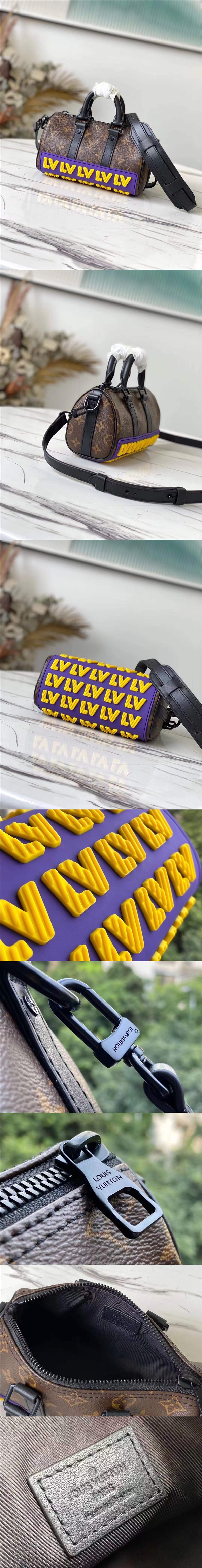 【高仿】路易威登/LV Keepall XS手袋,飾以乳膠字母鑲飾排列於Monogram帆佈下端,迸發明亮色彩的同時提供穩妥保護,妙趣闡釋Rubber主題。雙手柄和可調節肩帶實現舒適背攜。款號:M45788