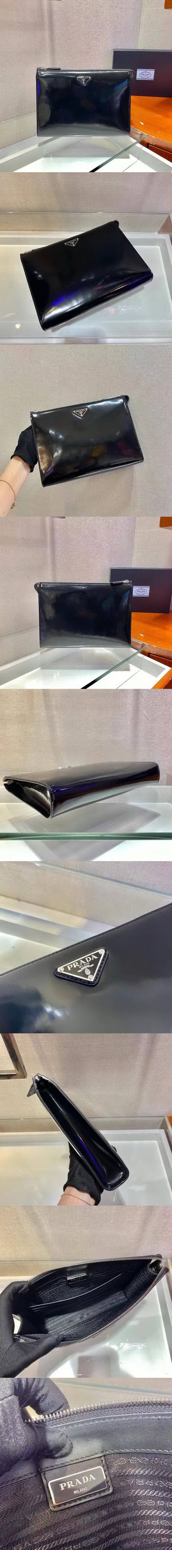 【高仿】普拉達/Prada 手拿包,采用亮面皮革打造,演繹摩登的極簡主義風格,復古亮面皮革是品牌的標志性材質,慣用於時尚界,簡約大氣又時尚,款號:2VF030