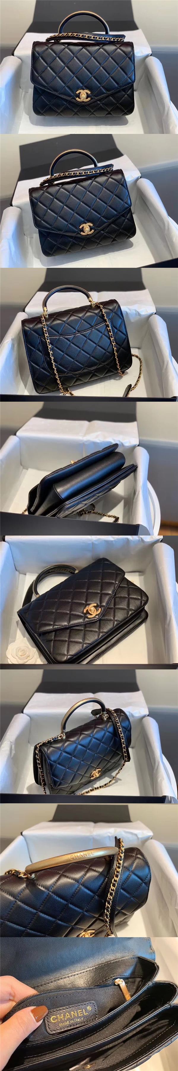 【高仿】香奈兒/Chanel 手拎單肩系列,選用小牛皮與做舊復古金色金屬精心裁制而成,斜挎單肩手拎三用,尺寸不算大,但多隔層的內裡使容量更大,可給你更有序的分類