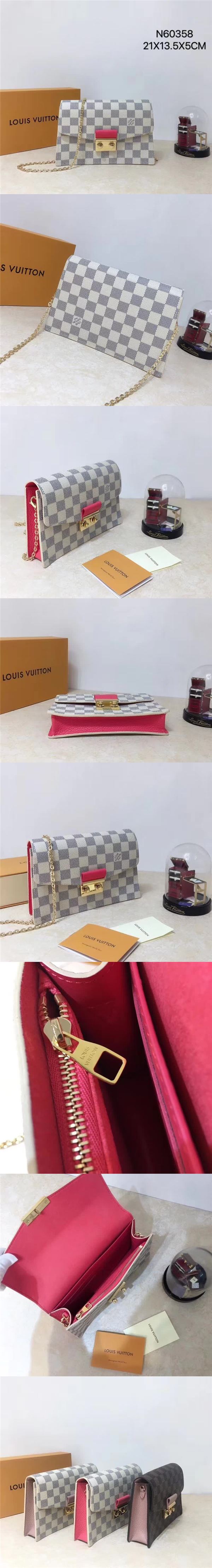 高仿路易威登/LV Croisette 鏈條包,融合 Damier Ebene 帆佈與彩色皮革,點綴硬箱傳承至今的 S-lock 鎖扣,展現標志性設計理念,款號:N60358