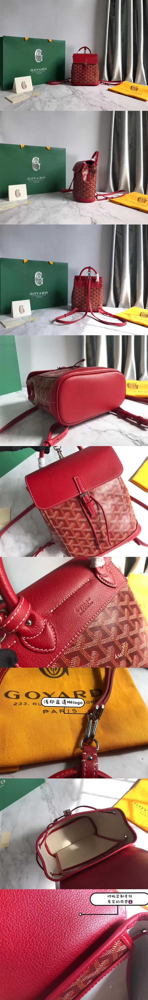 戈雅/Goyard Alpin 迷你雙肩包,一款匠心打造,極具實用價值的多功能包,采用以亞麻,大麻纖維和棉為主要成分的定制雙層加厚雨露麻,既可以手拎,也能夠肩背或者斜挎在身上,還能成為你的迷你“小書包”【編號】B062【顏色】紅色【尺寸】21.5 X 18.5 X 8.5 cm【規格】頂部手柄翻蓋開合帆佈襯裡內貼袋可拆卸可調節肩帶【附屬品】防塵袋