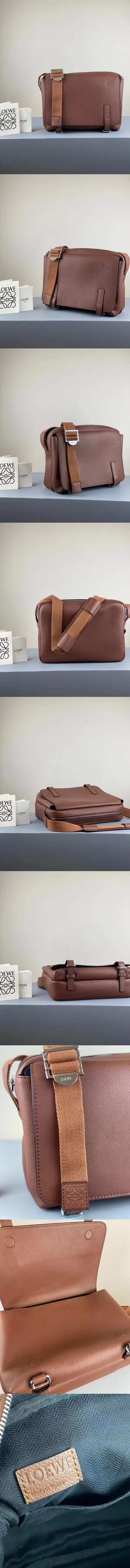 【高仿】羅意威/Loewe 郵差包,采用進口荔枝紋小牛皮搭配背部柔軟細紋皮小牛皮精心裁制而成,一改過去經典郵差包做法,設計瞭拉鏈主隔層,前部搭配搭扣打開方式放隱私物品,安全之餘更加人性化,整體感覺更無懈可擊