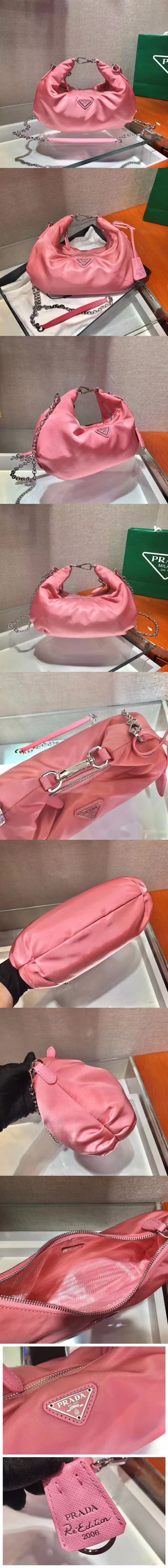 普拉達/Prada Hobo雲朵包,一包三用,袋口五一金扣又可手提,鐵鏈一調又當可腋下包或斜背,這款量空間比之前Hobo大很多,長錢包,雨傘都可放以進去,款號:1BH172【編號】1BH172#B039【顏色】粉色【尺寸】24 X 16 X 7 cm【規格】拉鏈開合尼龍標識襯裡可拆卸鏈條肩帶【附屬品】防塵袋
