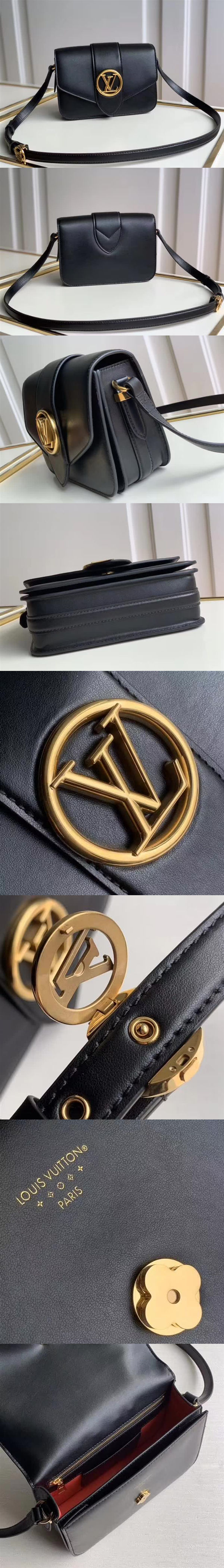 路易威登/LV Pont 9 手袋,由光滑皮革打造而成,曲線線條利落有序,品牌經典標識重新詮釋,裝點手袋的翻蓋及可調節的皮帶搭扣上,彩色皮革內襯與翻蓋底部的 Monogram 花卉磁扣藏匿其間,低調精致,款號:M55948【編號】M55948#D518【顏色】黑色【尺寸】23 X 15 X 8 cm【規格】翻蓋開合皮革襯裡2個隔層1個拉鏈袋可調節肩帶【附屬品】防塵袋