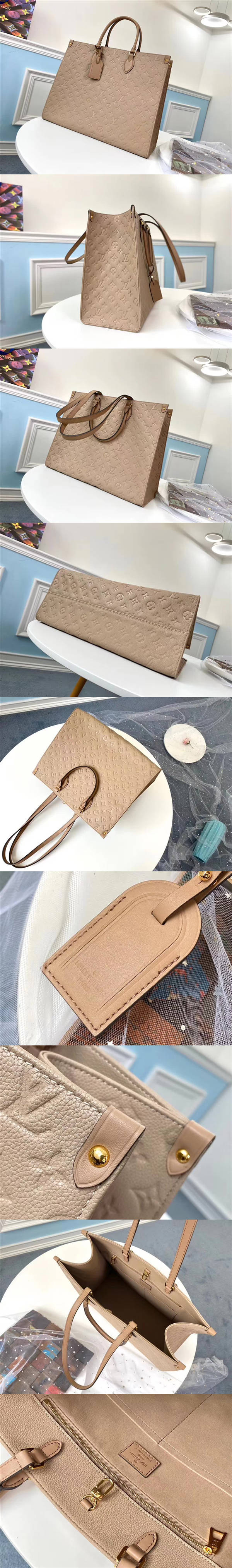 路易威登/LV Onthego 手袋,以 Monogram Empreinte Giant 壓紋軟牛皮呈現經典方形輪廓,其充裕空間可收納辦公檔和筆記本電腦,手提或利用長肩帶肩背,可在通勤與休閑狀態間切換自如,款號:M44933【編號】M44933#L068【顏色】淺啡色【尺寸】41 X 34 X 19 cm【規格】皮革手柄鉤扣開合超細纖維襯裡2個貼袋1個拉鏈袋皮革肩帶【附屬品】防塵袋