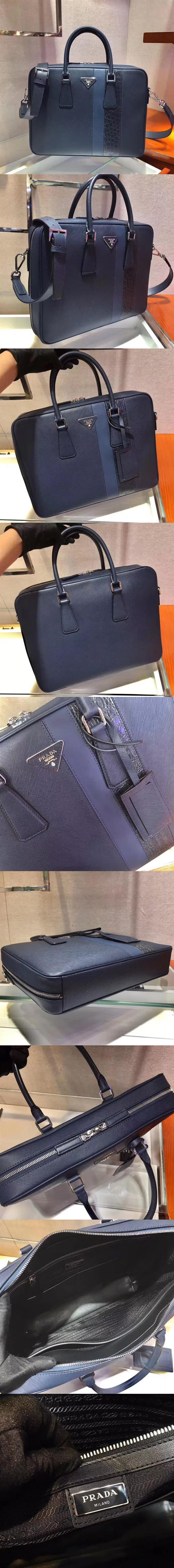 【高仿】普拉達/Prada 公文包,采用進口Saffiano皮革材質搭配鱷魚皮飾邊點綴包身,勾勒輪廓,顯得格開時尚和大氣,款號:2VE011D