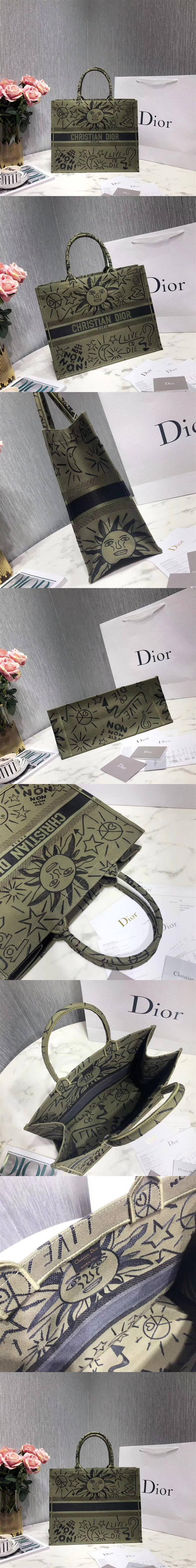 迪奧/Dior Book tote 購物袋,采用通體刺繡帆佈精制而成,整個包以塗鴉圖案設計,為盛夏造型增添閑適氣息,相互碰撞出獨特的絢爛效果,每隻手袋歷時三十二個工時以上,包含三種不同的刺繡針法,由一百二十萬針縫線精制而成,款號:M1286【編號】M1286#D301 【顏色】綠色【尺寸】41.5 X 32 X 5 cm【規格】頂部手柄無襯裡【附屬品】防塵袋