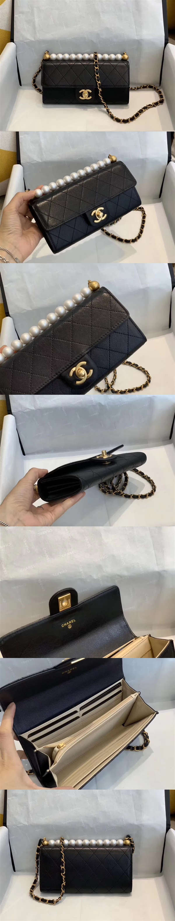 香奈兒/Chanel 珍珠小包,單口蓋長夾帶珍珠鏈條實在太可愛,和同系列珍珠包一樣轉軸開蓋設計增添瞭安全感,不同於woc的經典版型,珍珠款顯得更加百搭俏皮,款號:AS88812【編號】AS88812#A125【顏色】黑色【尺寸】19.5 X 4 X 10 cm【規格】翻蓋開合2個隔層1個拉鏈袋12個卡槽2個夾層鏈條肩帶【附屬品】防塵袋