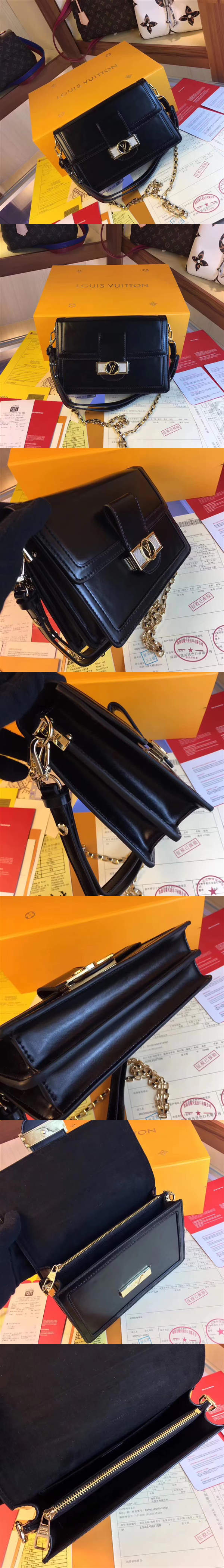 路易威登/LV Dauphine 手袋,選用牛皮精心裁制而成,優雅烘托LVCircle鎖扣,經典設計煥新,款號:M55735【編號】M55735#2031【顏色】黑色【尺寸】25 X 17 X 10.5 cm【規格】翻蓋開合超細纖維襯裡2個隔層內貼袋拉鏈袋可拆卸鏈條肩帶可拆卸皮革肩帶【附屬品】防塵袋
