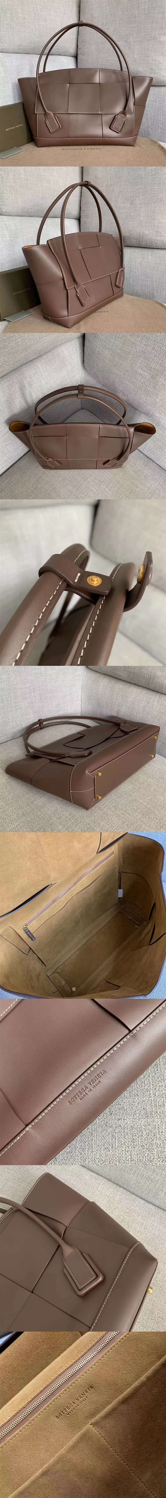 寶緹嘉/BottegaVeneta Arco 手袋,由拼皮方塊結構而成,大耳朵還配帶急紐扣,超級細心,保留瞭Bv的經典元素,卻又加入瞭柔軟,藝術,一眼定永久的節奏,實用,又時尚,款號:573400【編號】573400#A078【顏色】深棕色【尺寸】56 X 37 X 14 cm【規格】皮革手柄翻蓋開合超細纖維襯裡內貼袋拉鏈袋底部金屬保護釘【附屬品】防塵袋