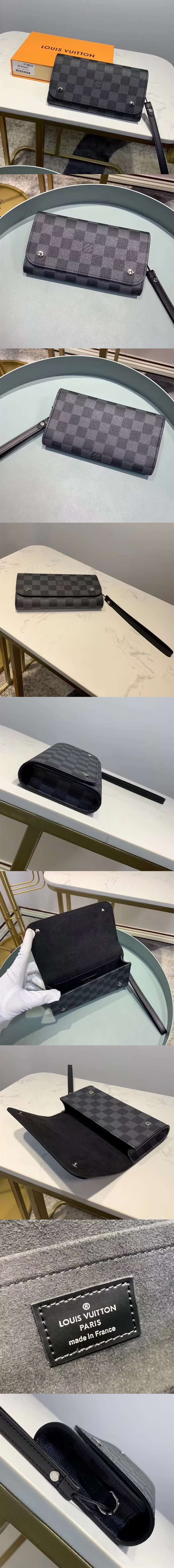【高仿】路易威登/LV Kasai手包,選用標志性Damier Graphite塗層帆佈搭配皮革精心裁制而成,既可夾於手臂內側,亦可通過包帶系手腕,款號:M58080