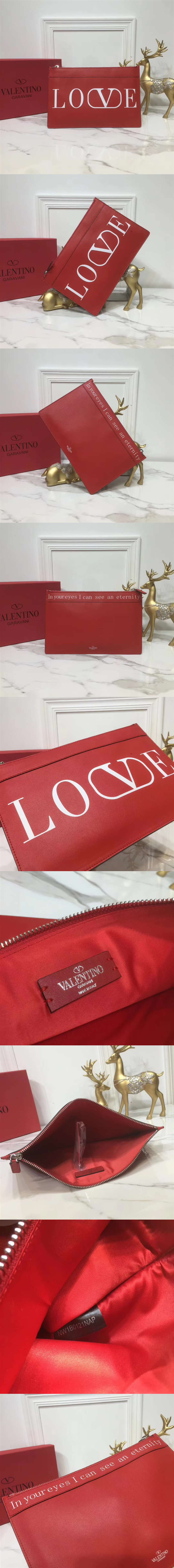 華倫天奴/Valentino 手拿包,選用小牛皮裁制而成,正面點綴LOVE徽標印紋,背面點綴詩詞印紋,皮質柔軟,時尚百搭,款號:0001【編號】0001#B038【顏色】紅色【尺寸】30 X 20 cm【規格】拉鏈開合織物襯裡【附屬品】防塵袋