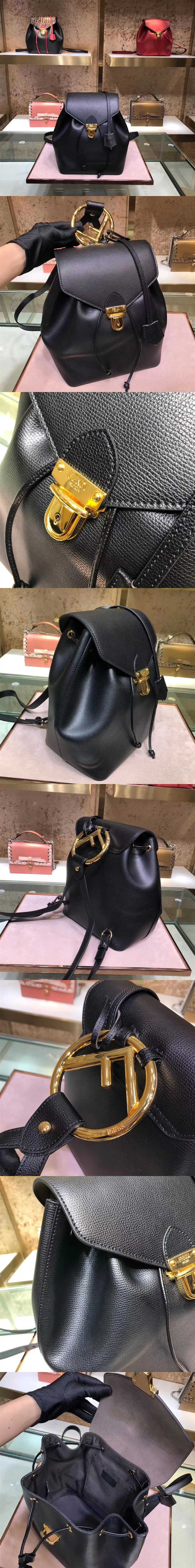 高仿芬迪/Fendi 雙肩包,選用小牛皮精心裁制而成,打破舊款的設計,頂部飾以大大的金屬徽標 F 裝飾,款號:2803