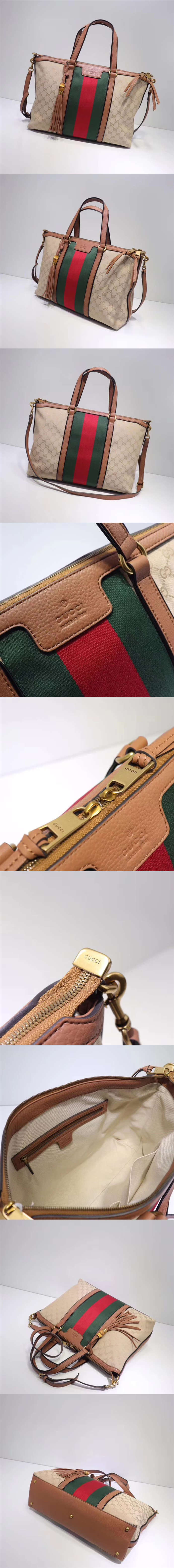 高仿古馳/Gucci 購物袋,采用人造帆佈搭配牛皮裁制而成,飾有標志性彩帶,隨性搭配,煥新演繹經典,款號:309621