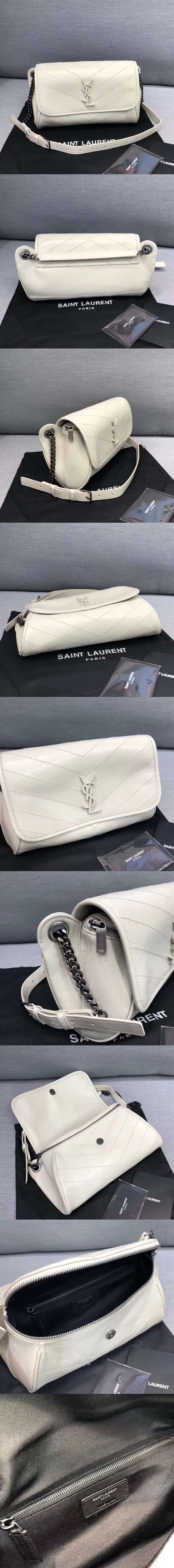 聖羅蘭/YSL Niki 胸包,選用褶皺復古油蠟皮裁制而成,飾以皮革覆蓋的YSL聯結金屬標識,帶有皮革加固肩帶,簡約時尚,高端大氣,款號:577124【編號】577124#Y073【顏色】白色【尺寸】28 X 16 X 9 cm【規格】翻蓋拉鏈開合織物裡襯內部拉鏈袋可調節肩帶【附屬品】防塵袋