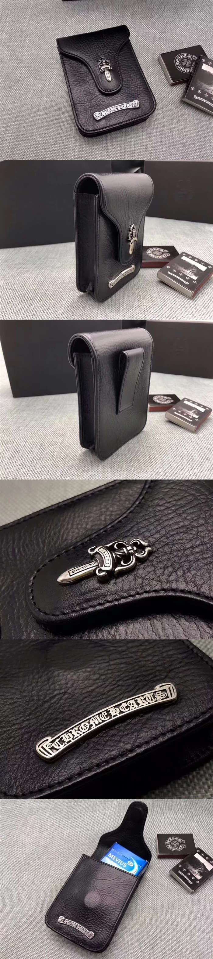 克羅心/ChromeHearts 多用包,可以當煙包,雪茄包,手機包,多用途,選用進口摔紋牛皮,男女同款【編號】C050【顏色】黑色【尺寸】11 × 8 × 3 cm【規格】匕首徽標翻蓋開合2個隔層【附屬品】防塵袋