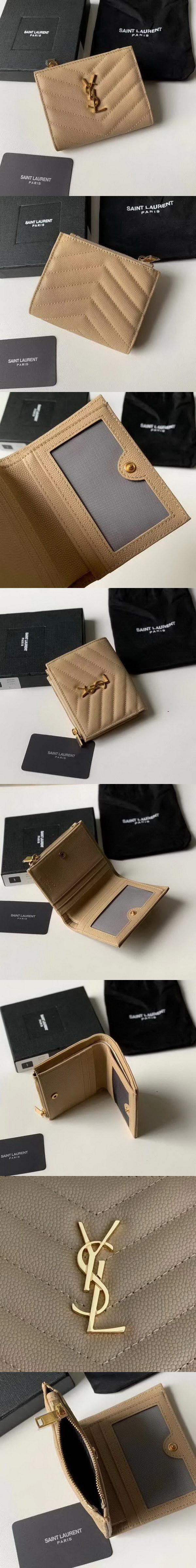 聖羅蘭/YSL 短款錢夾,緊湊型,選用顆粒紋小牛皮精心裁制而成,飾有金屬YSL縮寫聯結,超能裝,方便攜帶,款號:459738【編號】459738#G020【顏色】如圖所示【尺寸】12cm X 10cm X 3cm【規格】對折摁扣開合1個鈔票隔層4個卡槽1個拉鏈零錢袋【附屬品】防塵袋