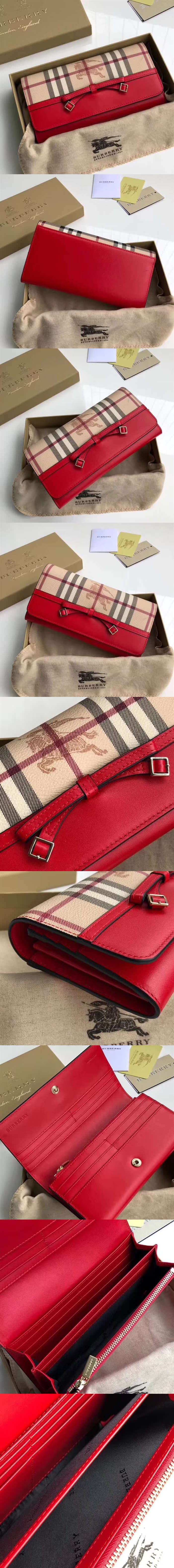 巴寶利Burberry蝴蝶結長款錢夾,選用Vintage 格紋搭配柔軟小牛皮,飾以馬術騎士圖案,蝴蝶結,款號:40717551【編號】40717551#C025【顏色】大紅色【尺寸】19 X 10 X 2.5cm【規格】翻蓋開合2個鈔票隔層18個卡槽1個拉鏈袋2個側貼袋1個中間夾層【附屬品】防塵袋