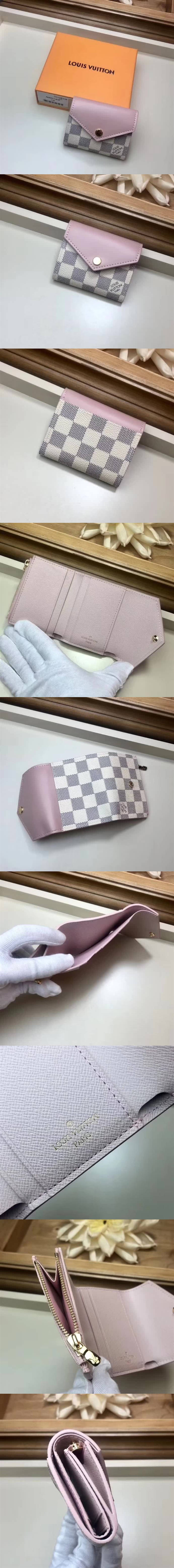 路易威登LV ZOE 錢夾,融合 Damier Azur 帆佈與彩色調皮革勾勒信封式構型,翻蓋鑲綴金色按扣,外形小巧,可輕松裝入小手袋,手拿包或口袋中,款號:N60168【編號】N60168#D518【顏色】白格/粉色【尺寸】9.5cm(長)X7.5cm(高)X3cm(寬)【規格】按扣開合1個鈔票隔層1個拉鏈袋4個卡槽外部貼袋【附屬品】防塵袋