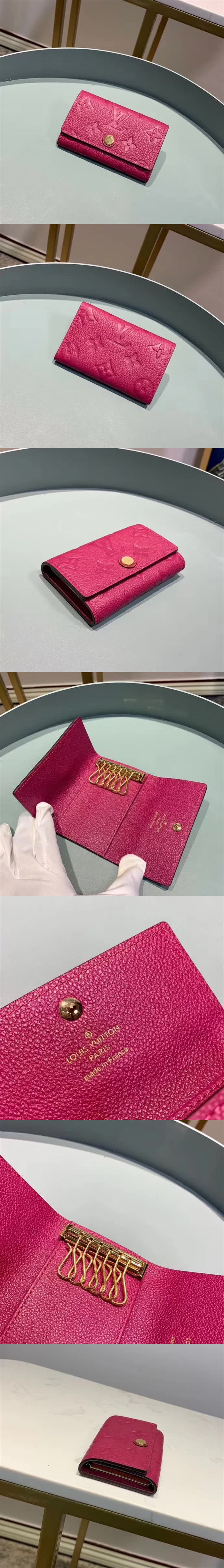 路易威登/LV 鑰匙包,設計小巧精致的鑰匙包,設有六個可系扣六把鑰匙的鎖扣。采用全皮制造,配襯手袋或公文包,既實用又美觀,款號:M64421 【編號】M64421#D518【顏色】玫紅色【尺寸】10cm(長)X7cm(高)【規格】金色五金件6個鑰匙鉤扣摁扣開合【附屬品】防塵袋