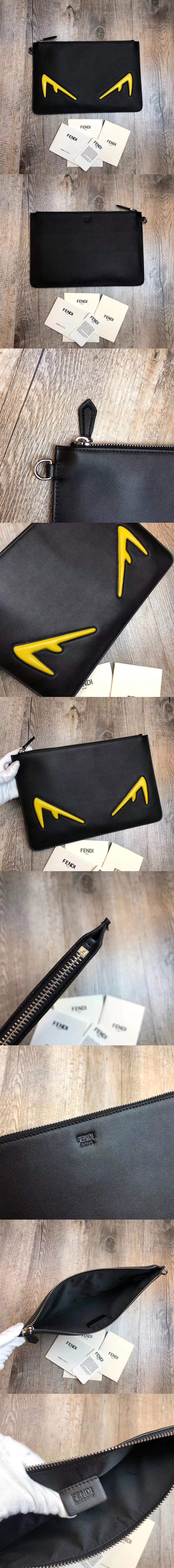芬迪/Fendi 手包,采用小牛皮材質,飾有黃色凸紋壓花BAG BUGS眼睛,款號:7N0078【編號】7N0078#A359【顏色】黑色【尺寸】30cm(長)X20(高)【規格】Fendi燙印徽標銀色五金配件可拆卸手腕帶棉麻裡襯【附屬品】防塵袋