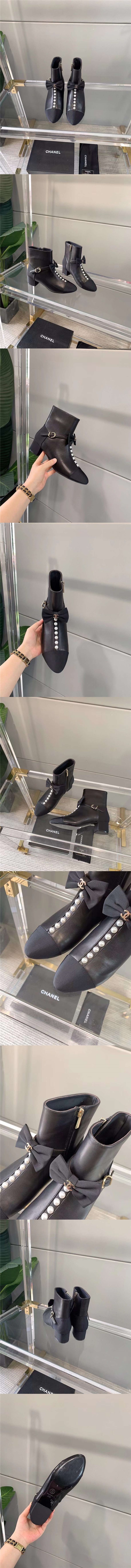 香奈兒Chanel新款珍珠蝴蝶結短靴,優雅精致,輕便秀氣,混種羊皮鞋面,羊皮內裡墊腳,眾多網紅上腳!跟高5.5cm(可訂40不退不換)#4024