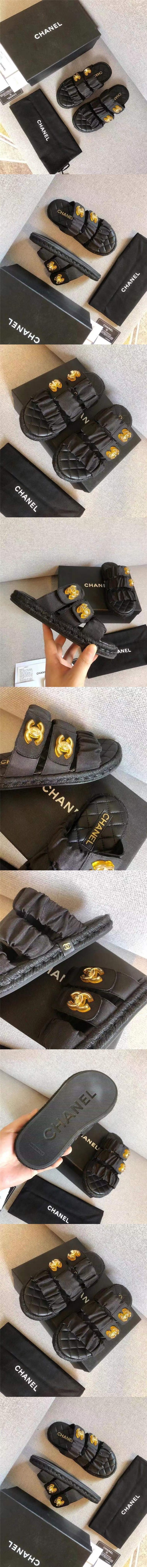 Chanel最新爆款涼拖鞋,定制特殊綢緞、搭配金色雙C琥珀色大扣、墊腳羊皮刺繡菱格,草編組合,上腳超級舒適