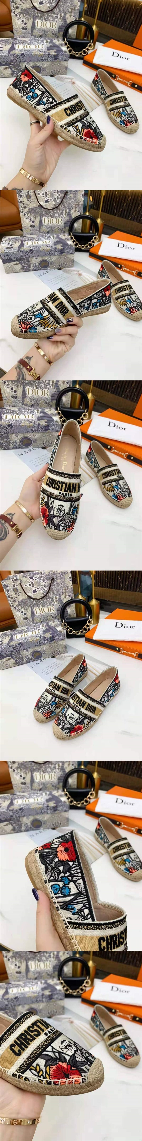 迪奧Dior新款圖案提花刺繡漁夫鞋,經典logo刺繡素設計,手工縫制麻繩,春夏必入單品,刺繡鞋面,混種羊皮墊腳、防滑橡膠底