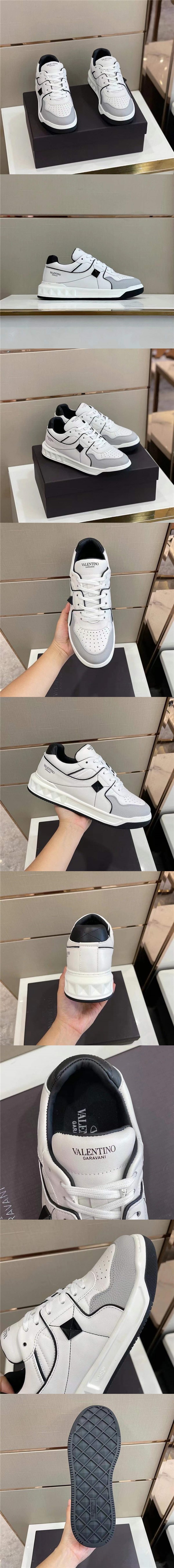 高仿華倫天奴Valentino新款男士休閑低幫小牛皮運動鞋,半啞光工藝效果處理,超大鉚釘細節,鞋跟和鞋舌裝飾絲網徽標,TPU大底,實物更漂亮