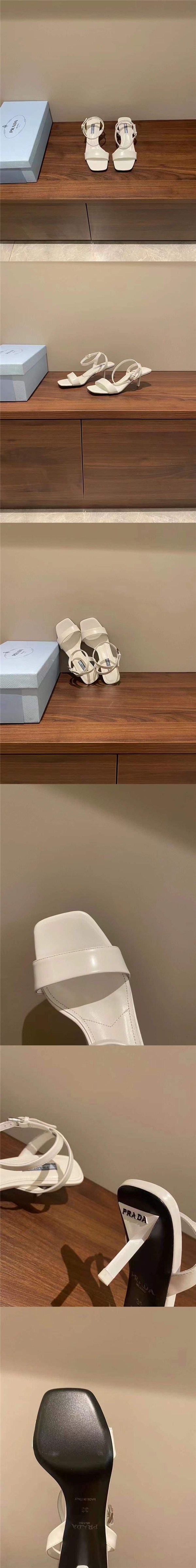 普拉達Prada新款方頭一字涼鞋,時髦百搭款,開邊珠面,羊皮內裡,真皮大底,跟高:5cm #4024
