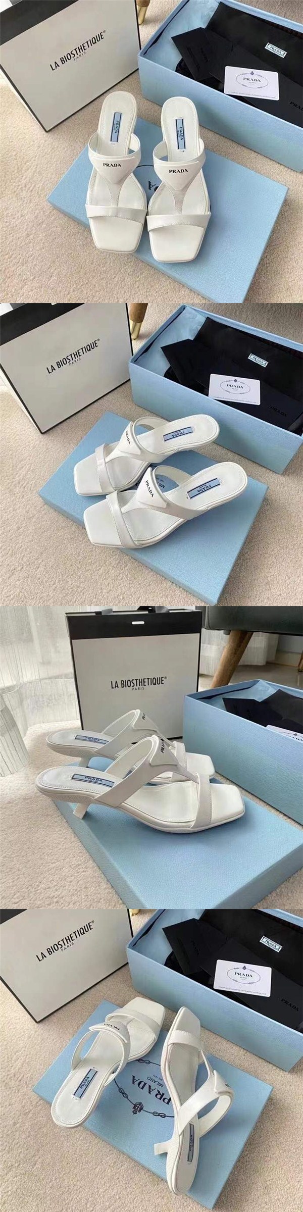 普拉達Prada2021夏季系列拖鞋,別出心裁的逗號跟彰顯復古風情。品牌標志性的三角形煥然一新,於此款鞋履上化身為微襯皮革細節,為品牌傳統元素註入新活力。鞋面:綿羊皮電繡、內裡:羊皮內裡,橡膠隔層鞋底和光學圖案鞋底花紋#010