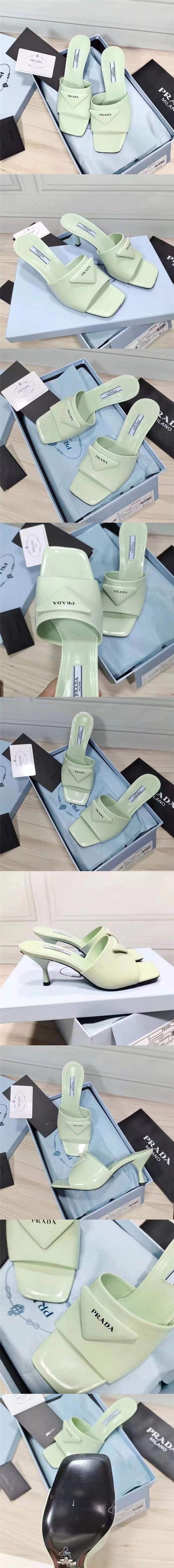 普拉達Prada最新款小貓跟方頭爆款涼鞋,開邊珠牛皮啞光墊腳羊皮,真皮大底