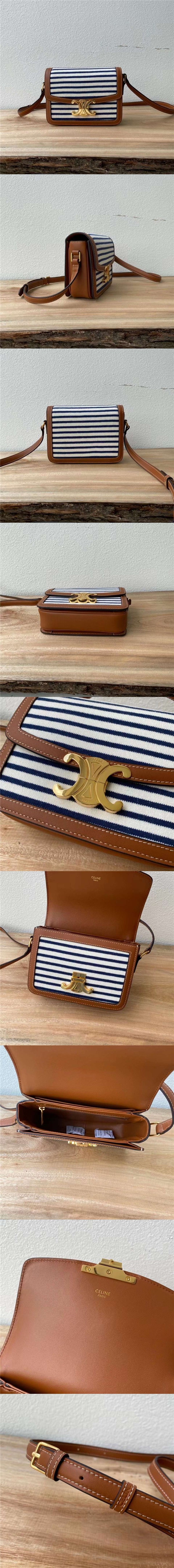【高仿】賽琳Celine2021秋冬條紋系列單肩包,凱旋門新理念的定義 添加巴黎的元素 復古風調 高貴的氣質 被時尚領域再度認知 超多明星的熱愛款 經典再創新 再次重塑經典包扣精致設計 很符合時尚前沿,外牛皮內裡純羊皮,款號:186423海軍藍條紋