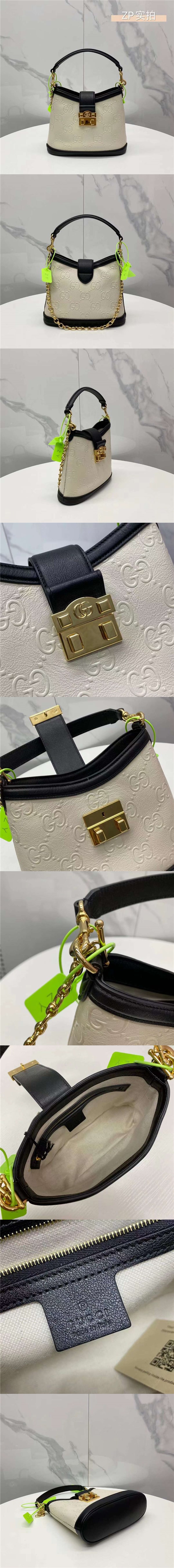 高仿古馳Gucci新款女士方扣小桶包,簡潔設計 印上GG花紋,時尚又有個性,日常優雅之選,款號:675788
