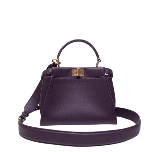 【高仿】芬迪Fendi小牛皮手袋原色硬隔板分隔出兩個隔層,配以電鍍索環和飾條。單手柄、金色轉鎖開合和金屬配飾,可調節可拆卸肩帶,內置拉鏈口袋,款號:6079