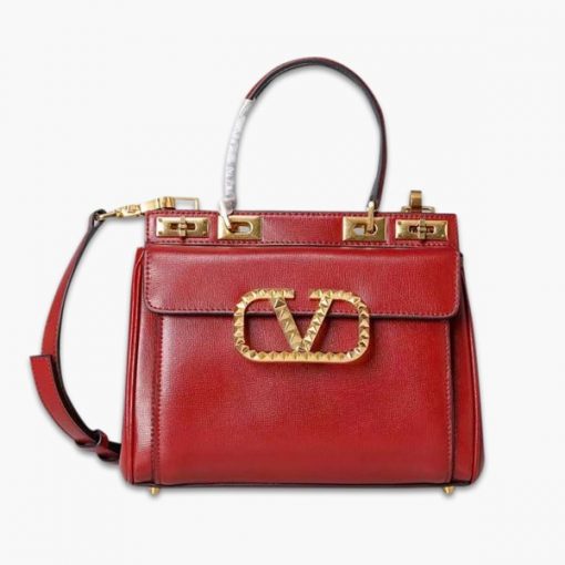 華倫天奴Valentino新款粒面小牛皮手袋,結構式設計,裝飾標志性的鉚釘VLogo Signature和雙旋鎖,型號:2060【編號】2060#B038【顏色】紅色【尺寸】23*20*6cm【規格】雙旋鎖開合【附屬品】防塵袋