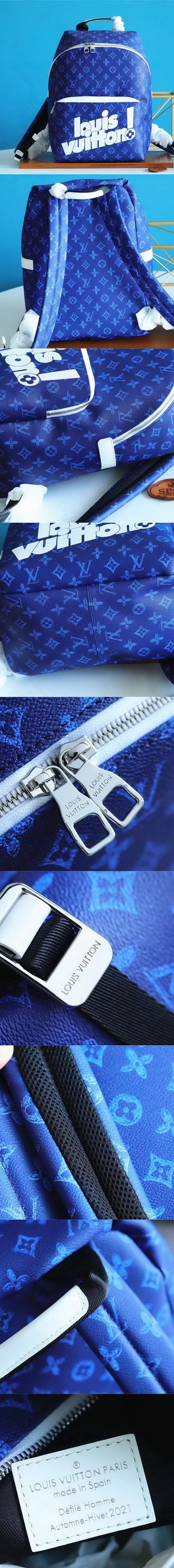 高仿路易威登/LV Discovery 雙肩包取材復古Monogram塗層帆佈,學院背包構型帶來舒適便捷的使用體驗。款號:M45879