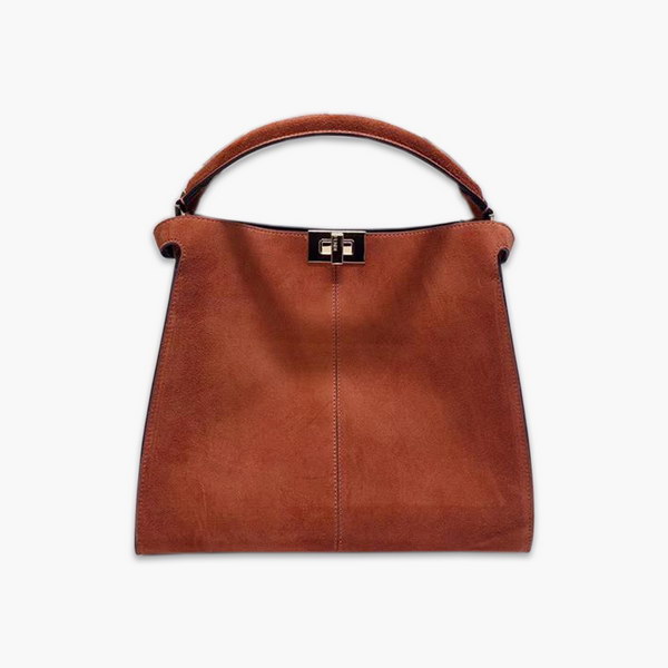 【高仿】芬迪/Fendi 手提包,柔軟輕盈,選用麂皮裁制而成,內袋釉光佈料,有同色系 FF 圖案,單手柄和標志性扭鎖,款號:6100