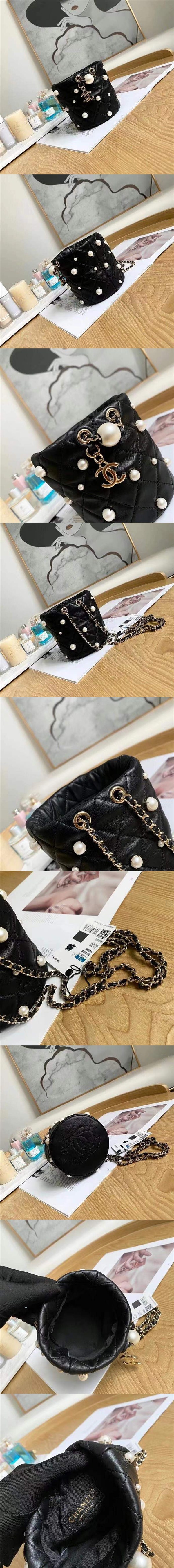 【高仿】香奈兒/Chanel 珍珠鏈條水桶包,珍珠搭配的mini水桶包可愛到無敵,必入的時髦單品,斜挎長度正好,包裡面放個卡包,鑰匙,囗紅,粉餅,出門妥妥的夠瞭!款號:AS2518