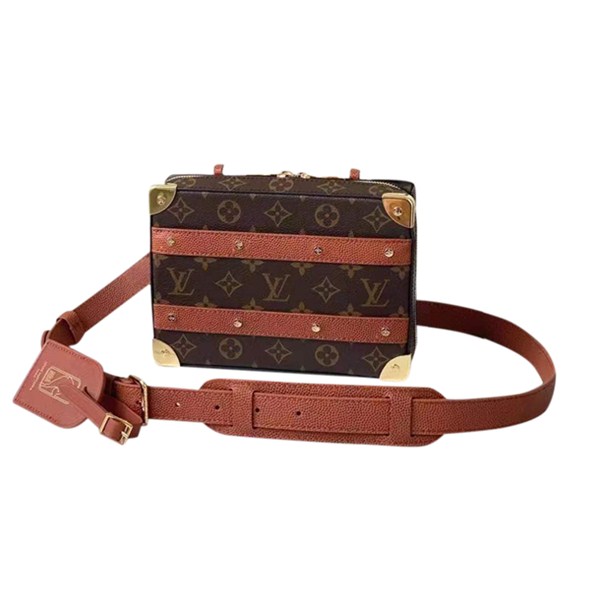 高仿路易威登/LV Handle Trunk 手袋,匯聚方正構型、金屬邊角和鉚釘,傳承經典硬箱設計,頂部皮革手柄傳遞復古氣息,可容納手機和錢夾,款號:M45785