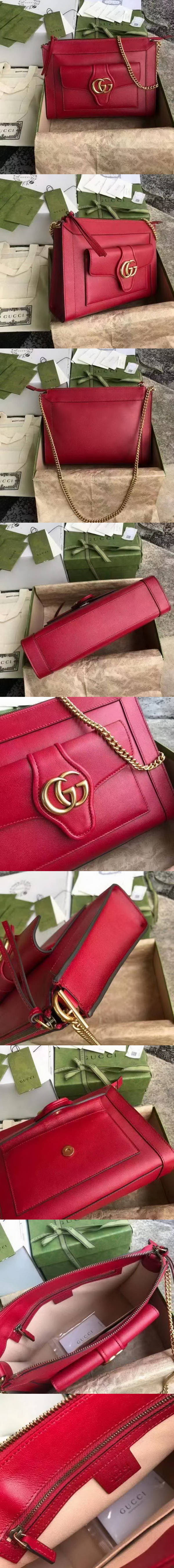 高仿古馳/Gucci 鏈條包,長方形造型,結合流暢的設計線條和精致的鏈式肩帶,散發濃鬱的復古感。皮革材質和品牌經典雙G字母交織圖案令整款設計更添魅力。采用小牛皮,做工精致,質量如圖可見。款號:648999