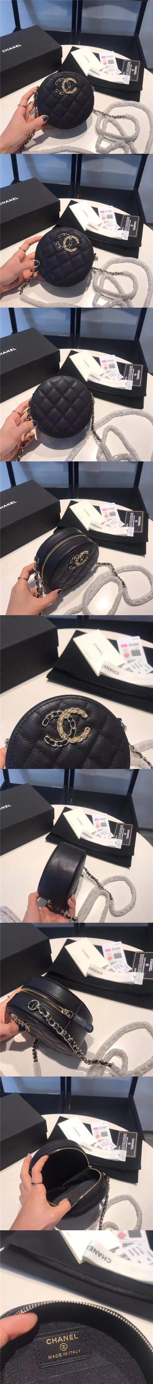 【高仿】香奈兒/Chanel 最新圓餅包,荔枝細球紋牛皮材質,logo亮眼獨特洋氣,一半穿皮一半穿金鏈條設計,精致又特別,12個顏色