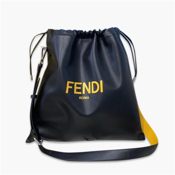 高仿芬迪/Fendi Pack系列肩背包,牛皮皮革材質,正面點綴品牌logo Roma字樣,抽繩設計,增加瞭時髦俏皮的元素,可手拿,可斜挎