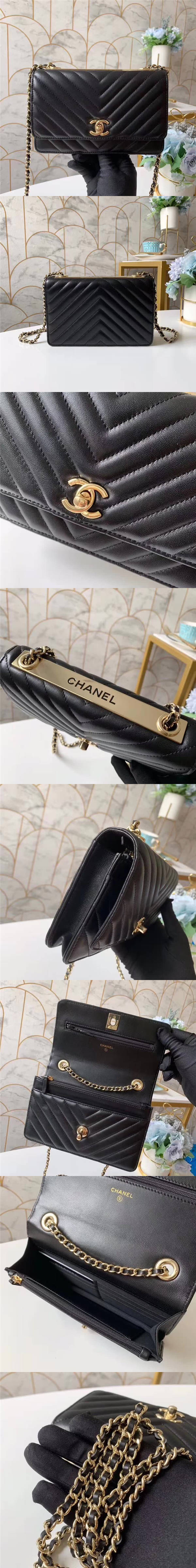 高仿香奈兒/Chanel Woc V型鏈條包,包身小巧,時尚百搭款,適合日常所需,羊皮,款號:AS80982