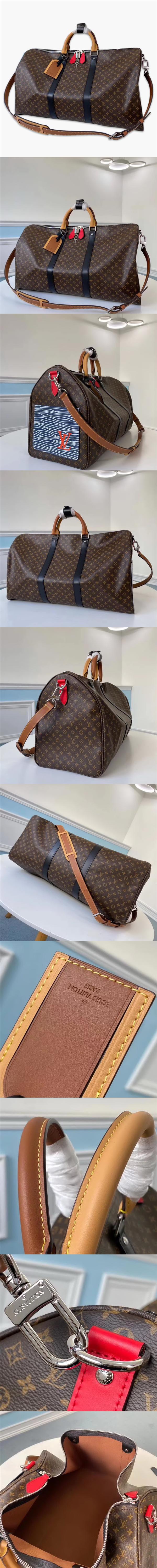 路易威登/LV Keepall Bandouliere 50旅行袋,Monogram Eclipse帆佈包身搭配品牌卷標圖案,機艙行李尺寸內含充裕空間,與紳士優雅隨行,款號:M45988【編號】M45988#L068【顏色】老花【尺寸】50 X 29 X 23 cm【規格】皮革手柄拉鏈開合織物襯裡內拉鏈袋可拆卸可調節肩帶【附屬品】防塵袋