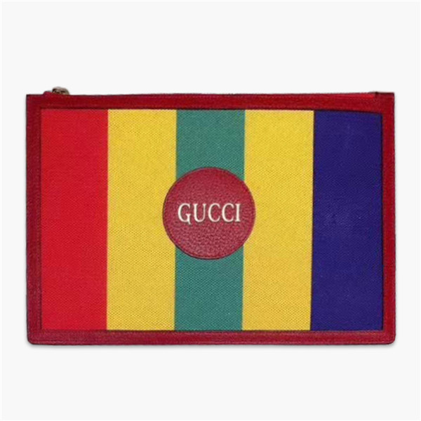 【高仿】古馳/Gucci 手拿包,典藏baiadera寬條紋織物采用藍,紅,黃和綠色條紋亞麻帆佈煥新演繹,水洗效果使顏色略顯褪色,紅色牛皮滾邊和金色印花壓花貼飾形成鮮明對比,款號:625602